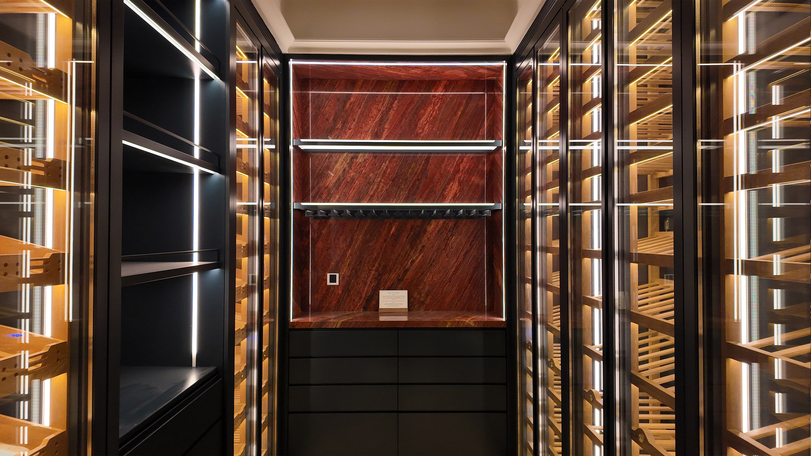 【注:此项目红酒柜+雪茄柜+洋酒柜+电动移门酒柜】